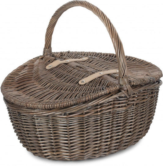 Antique Wash Finish Oval Picnic Basket (Without Lining)