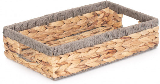 Small Shallow Rectangular Water Hyacinth Storage Basket with Grey Rope Border WH022/1