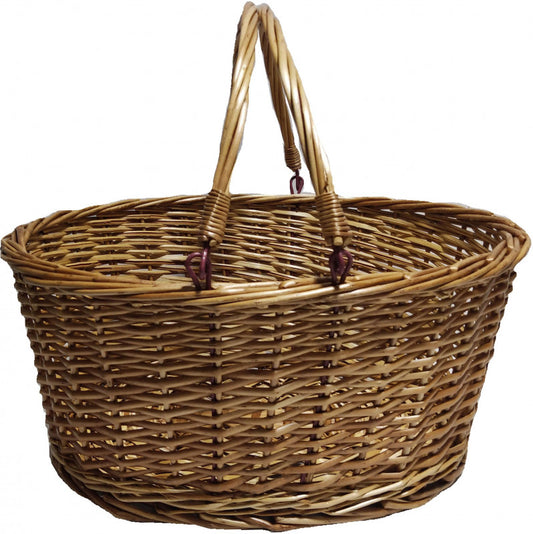 DOUBLE STEAMED WICKER SHOPPING BASKET with SWING HANDLES - UNLINED