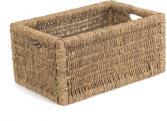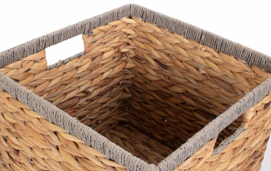 Small Square Water Hyacinth Storage Basket with Grey Rope Border